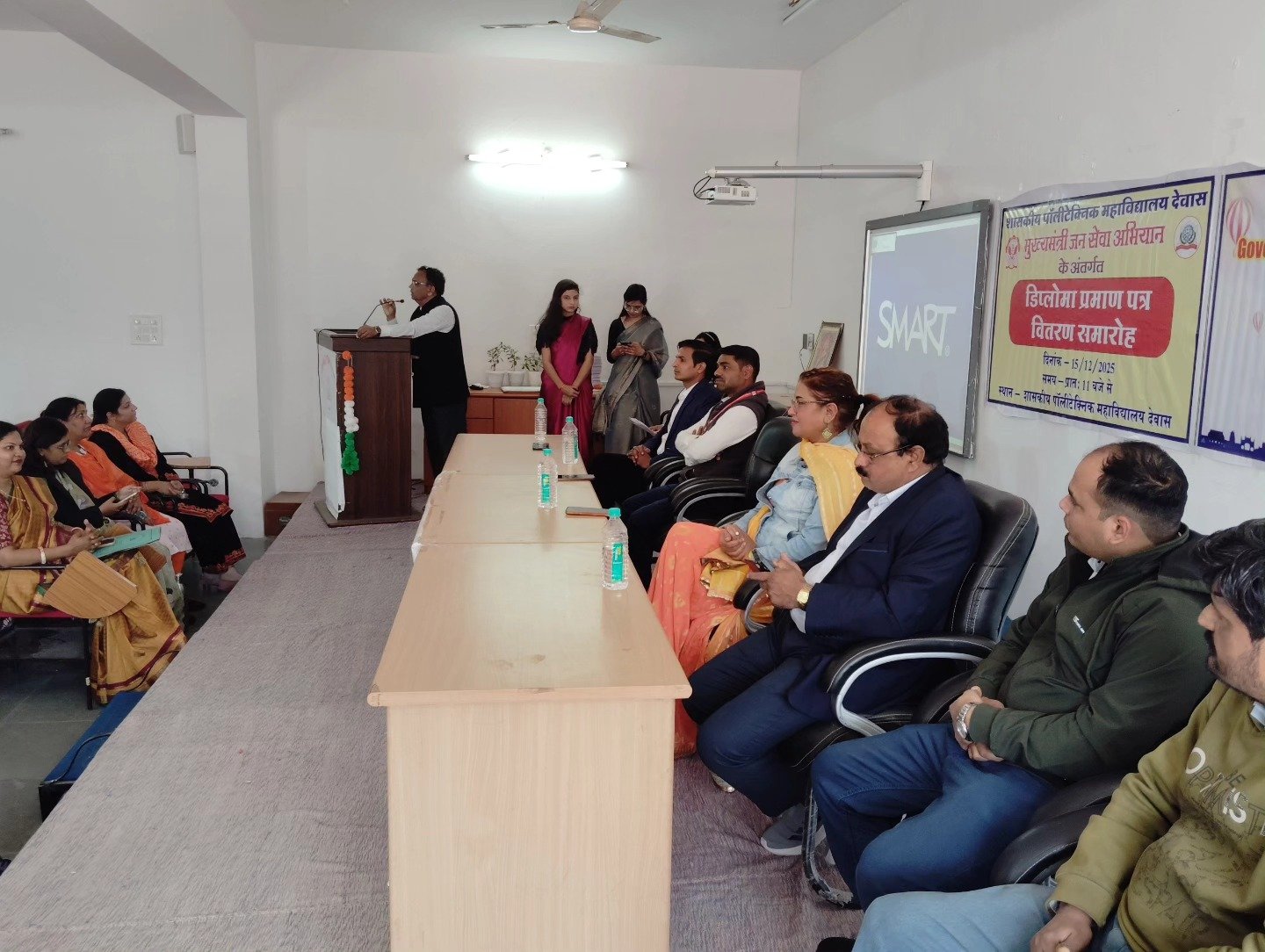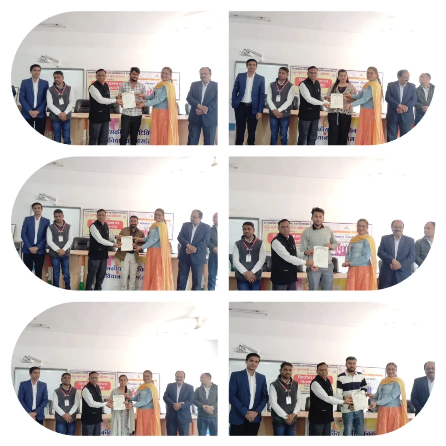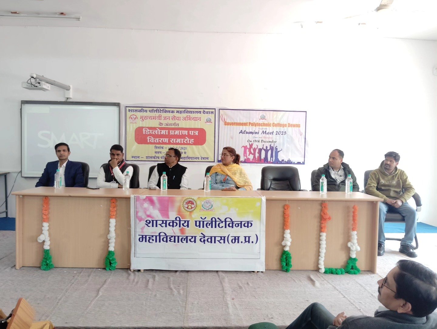 संस्था में दिनांक 15/12/2025 को मध्यप्रदेश शासन के निर्देशानुसार मुख्यमंत्री जन सेवा अभियान के अंतर्गत डिप्लोमा वितरण समारोह का आयोजन किया गया। इस अवसर पर संस्था के कुल 30 पासआउट विद्यार्थियों को उनके डिप्लोमा प्रमाण पत्र प्रदान किए गए।