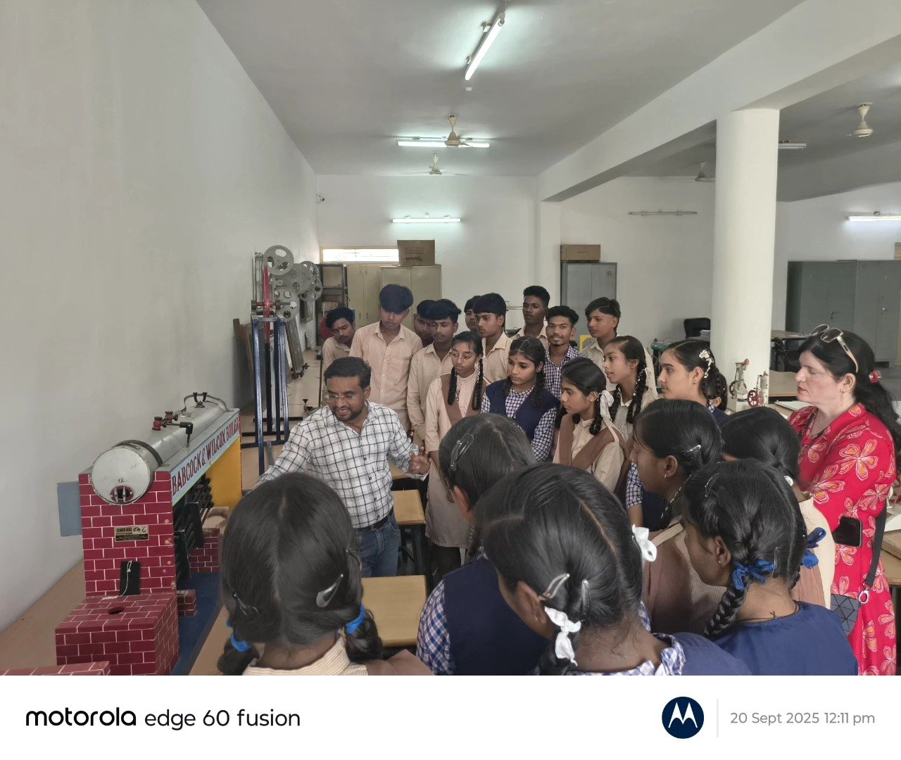 साथ ही, भ्रमण के दौरान विद्यार्थियों को संस्था की प्रवेश प्रक्रिया, विभागीय गतिविधियों, पाठ्यक्रम की संरचना, एवं भविष्य में उपलब्ध करियर अवसरों के विषय में भी विस्तारपूर्वक जानकारी प्रदान की गई। शिक्षकों ने इस अवसर को विद्यार्थियों के लिए अत्यंत उपयोगी और प्रेरक बताया। कार्यक्रम का उद्देश्य विद्यालय स्तर पर अध्ययनरत विद्यार्थियों में तकनीकी शिक्षा, प्रयोगात्मक अधिगम तथा नवाचार की भावना विकसित करना रहा।